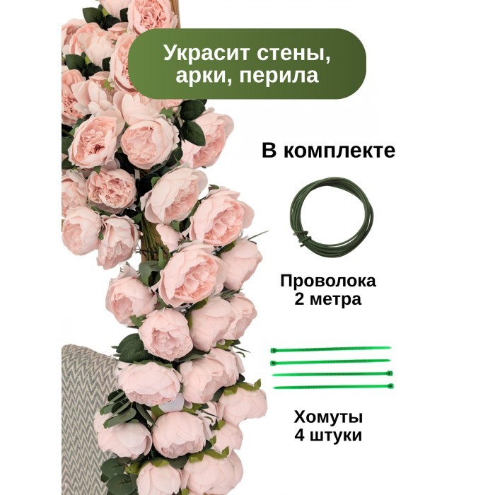 Цветы искуственные Пионы каскадные (37 штук, 120 см, цветок 10 см) розовый холодный 265900