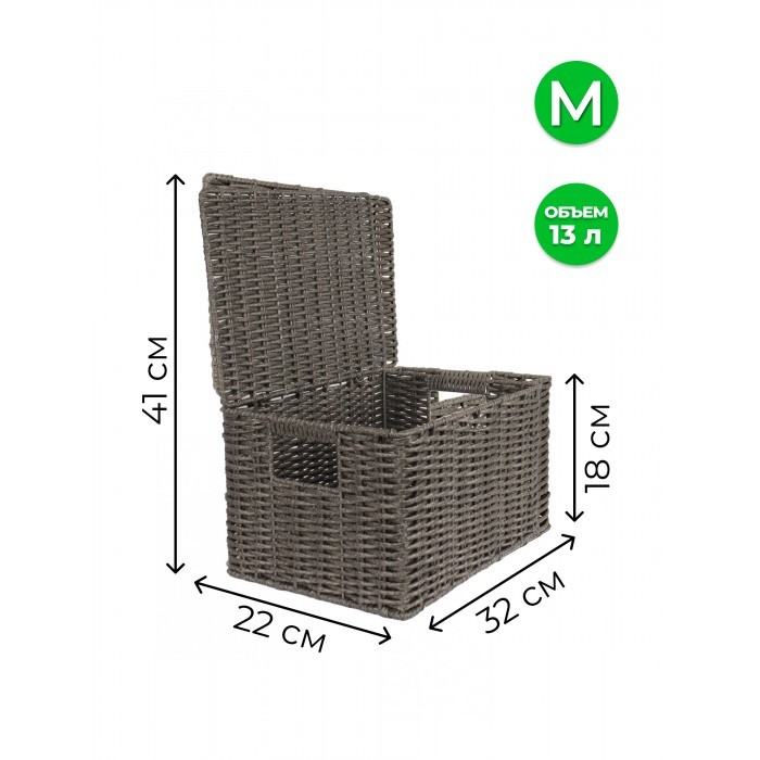Корзина плетеная с/крыш M 320*220*180-mpl-fbo иск/ротанг, серый 265520