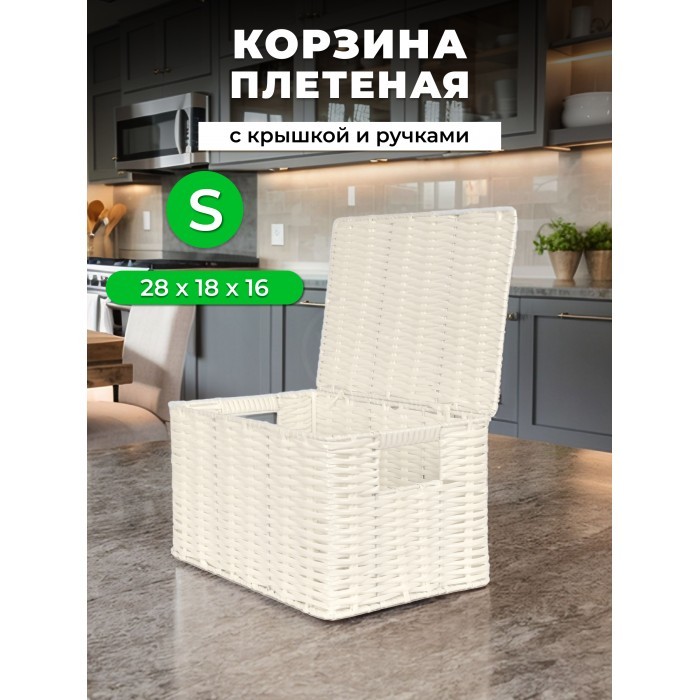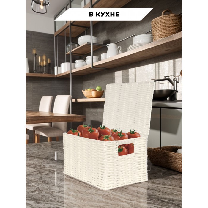 Корзина плетеная с/крыш S 290*190*160-mpl-fbo иск/ротанг, белый 265525