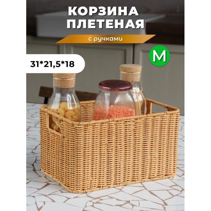 Корзина плетеная б/крышки M 320*220*180-mpl-fbo иск/ротанг, песочный 263008