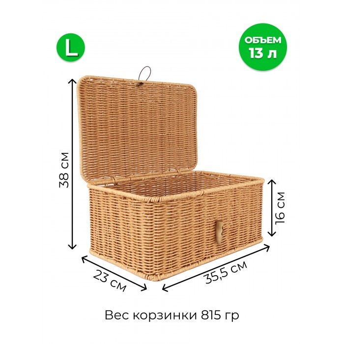 Корзина плетеная с/крыш Пуговка L 360*230*160-mpl-fbo иск/ротанг, песочный 265669