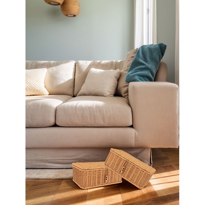 Корзина плетеная с/крыш Пуговка M 311*211*110-mpl-fbo иск/ротанг, песочный 265670