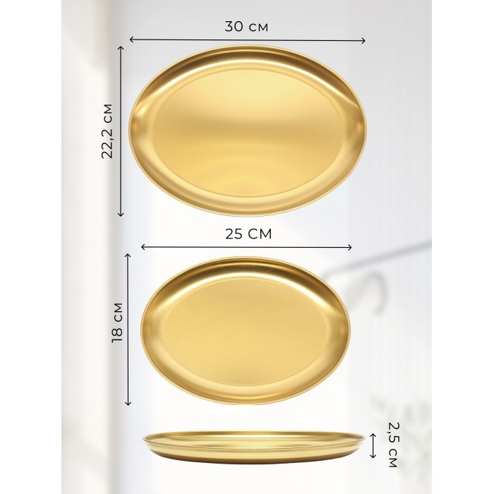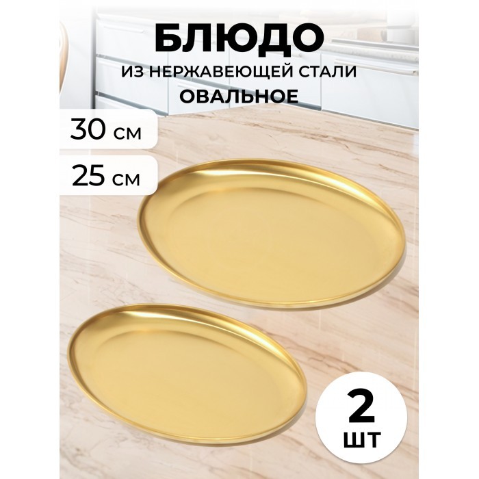 Набор блюд из нержевеющей стали овальные 2 шт ( 25*18см-1шт, 30*22-1шт) золото 266203