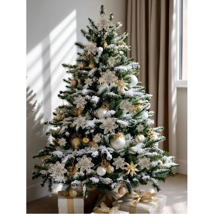 Набор Цветы Пуансеттия (15 штук - 8см-5шт/10см-5шт/14см--5шт+зажимы 15шт) серебро 266225
