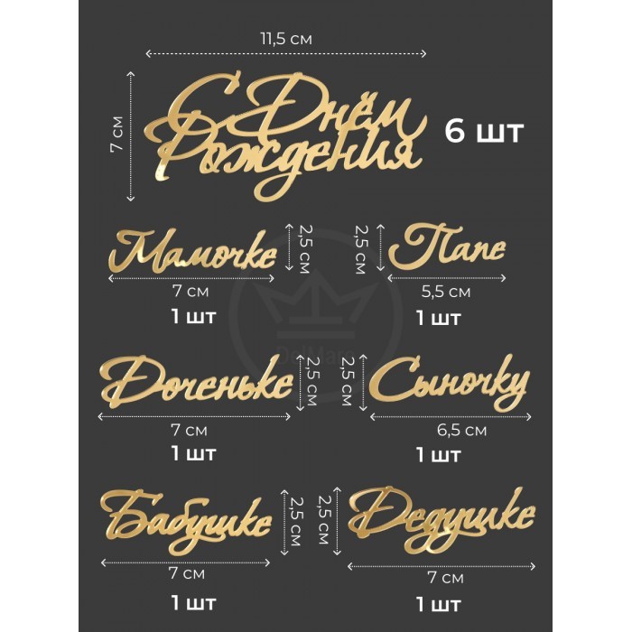Топпер зеркальный Сднем рождения (6 персон), золото 266155
