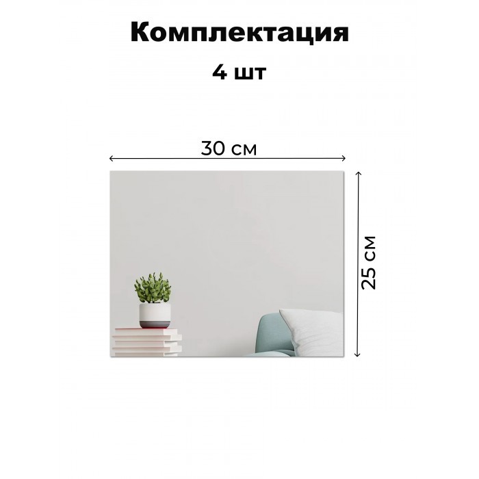Интерьерные зеркальные наклейки Прямоугольник 4 шт (30*25 см) 265982